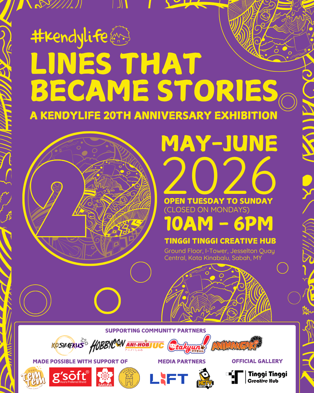Lines That Became Stories – A Kendylife 20th Anniversary Exhibition celebrates 20 years of creativity through doodles, comics, and visual storytelling. Held at Tinggi Tinggi Creative Hub in Kota Kinabalu, the exhibition invites visitors to explore Kendylife’s artistic journey, discover playful illustrations, join interactive doodle activities, and participate in creative workshops. Bah! Come and experience a world where simple, random lines grow into stories and be part of a vibrant celebration of art, imagination, and community.